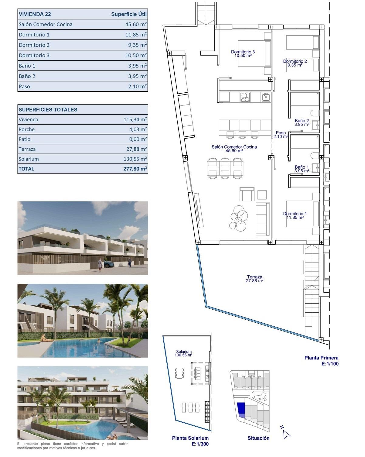 Новые квартиры и бунгало на продажу в Пилар-де-ла-Орадада, недалеко от пляжаЭксклюзивный жилой комплекс на юге Коста-БланкиОткройте для себя этот современный жилой комплекс, расположенный в Пилар-де-ла-Орадада, самом южном городе Коста-Бланки. Этот бутиковый комплекс предлагает выбор современных квартир и бунгало, спроектированных так, чтобы сочетать в себе комфорт, функциональность и средиземноморский стиль жизни.Проект состоит из всего 26 тщательно спроектированных домов с 2 или 3 спальнями и 2 ванными комнатами, что делает его идеальным вариантом как для постоянного проживания, так и для отдыха. Комплекс расположен в тихом жилом районе в нескольких минутах ходьбы от центра города, где жители могут посетить рестораны, кафе, супермаркеты, местные магазины и воспользоваться всеми необходимыми услугами.Пилар-де-ла-Орадада — очаровательный испанский городок, известный своей гостеприимной атмосферой, оживленной главной улицей и красивыми площадями. Благодаря отличному транспортному сообщению с близлежащими прибрежными районами и гольф-курортами, он является популярным местом для международных покупателей, ищущих солнечного климата и высокого качества жизни.Апартаменты и бунгало с частными открытыми пространствамиКомплекс предлагает два различных типа недвижимости, подходящих для разных стилей жизни.Комплекс включает 16 современных апартаментов. Покупатели могут выбрать между квартирами на первом этаже с частными садами, квартирами на средних этажах с просторными террасами или пентхаусами с частными террасами и соляриями на крыше. Каждая квартира включает парковочное место и кладовую в подземном гараже.Также доступно 10 бунгало. Бунгало на первом этаже имеют частные сады и парковку на участке, а бунгало на верхнем этаже предлагают террасы и частные солярии. Эти дома на верхнем уровне включают парковку и кладовую в подвале.Все дома были спроектированы с ярким интерьером, открытой планировкой и удобными жилыми зонами, которые естественным образом переходят в открытые пространства.Качественное строительство и современные удобстваДома построены из высококачественных материалов и оснащены современными системами, обеспечивающими комфорт и энергоэффективность в течение всего года.Меблированные кухниПолностью оборудованные ванные комнаты с душевыми перегородками и подогревом полаЭнергоэффективная аэротермическая система горячего водоснабженияПредварительная установка для канального кондиционированияЖители также могут пользоваться общим бассейном, окруженным ландшафтными садами и зонами для загара, создающими расслабляющую атмосферу, в которой можно наслаждаться средиземноморским климатом.Отличное расположение рядом с пляжами и гольф-полямиКомплекс имеет стратегическое расположение рядом с некоторыми из лучших пляжей и гольф-полей в регионе.Пляж Торре-де-ла-Орадада 3 кмПляж Миль-Пальмерас 3 кмГольф-клуб Lo Romero 6 кмМеждународный аэропорт Мурсии 45 кмАэропорт Аликанте-Эльче 75 кмЭтот район также предлагает отличное дорожное сообщение с близлежащими прибрежными городами, пристанями для яхт и развлекательными заведениями как на побережье Коста-Бланка, так и на побережье Коста-Калида.Найдите свой новый дом в Пилар-де-ла-ОрададаЭтот привлекательный новый жилой комплекс предлагает современные дома,
